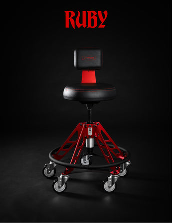 Working on a poorly built shop chair can be very dangerous and can lead to injury. The Elevated Steel Max is overbuilt with thick, powder coated steel & large casters to keep you safe & sturdy.